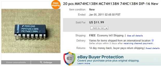 Yo he tomado capturas de pantalla de e-bay para hacer más fácil para usted encontrar los componentes necesarios para el 8 x 8 x 8 LED cubo construir. Yo no se molestó con los condensadores, ya que sobre todo tienen el mismo aspecto, y siempre y cuando usted consigue la derecha nominal Fahrad y voltios, se buena.