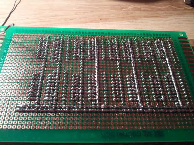 Cuando termines, es sabio utilizar el voltímetro para comprobar que todas las conexiones estén sólidas, y que no lo has hecho sin querer un puente donde no ha habido uno. Hice unas conexiones equivocadas y tuvo que usar un cordón de soldadura para reparar mis errores. Nota a sí mismo: no trabajar en condiciones de escasa luminosidad por la noche.