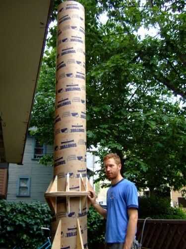 Llamado "Ángulos raros" se compone de 12' de cartón Sonotube usada por concreters a las columnas de la forma. Su barato, fácil de trabajar y lo suficientemente rígido para esta aplicación. Usted puede conseguir a un proveedor concreto.
