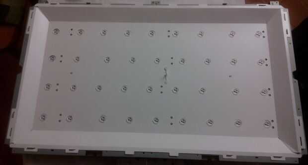 Sólo ver cómo se hace dentro de tomó una mirada más profunda al interior. Si quita el negro platic mantiene el sistema de luz trasera juntos usted será capaz de ver 4 capas ópticas. (en mi foto hay sólo 3, quité uno superior ya que es tipo de llenador polarizador sólo es útil para el panel LCD). La última capa es un panel plastica blanca de 3 mm y