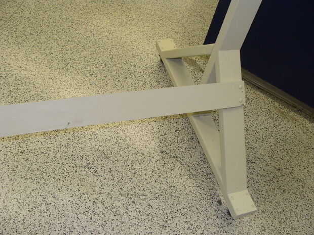 También he añadido una barra de apoyo adicional que une las piernas. Esto es simplemente una tabla de 1 x 4 para cada pierna con dos pernos de carruaje más y las tuercas de ala.