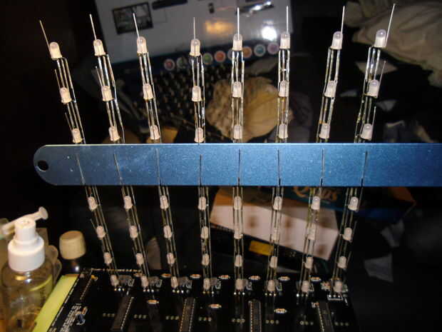 Esto toma mucho tiempo... Doblar a 64 en un momento, luego construyo 8 columnas y montarlos en un solo panel en la base y luego (con la excepción del panel principal) Conecte el panel con el resto del cubo antes de volver a doblar más LEDs.
