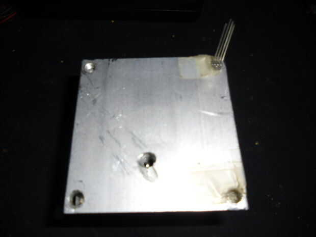 Mi plataforma de montaje acero inoxidable 2 / reglas de aluminio con muescas cada 26,5 mm en el centro y un disipador de calor XBOX con un agujero de montaje ligeramente perforaron (entonces cinta pone porque hice el agujero demasiado dang grande) si necesita reforzar su agujero para colocar el LED, poner cinta adhesiva sobre 3/4 del agujero y presione el LED - luego presione el resto de la cinta firmemente a tu "plantilla de doblez".