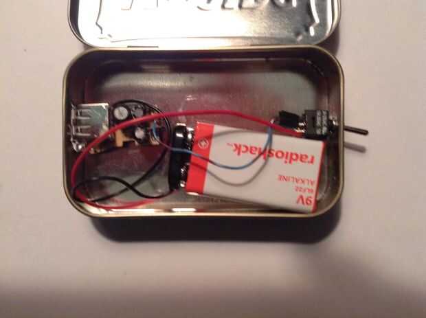 Dentro de las conocida altoids lata mentiras tres 2.200 mah baterías de iones de litio. Los tres se corrió en paralelo para crear una batería de 6.6 amp o 6.600 mah. Que triplica el tiempo de carga! Si una batería puede cargar su teléfono 75 por cien