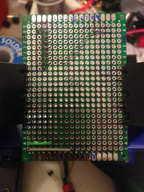 Este circuito fue hecho para caber en una placa 18 x 24 agujero, así que hice unos cuantos saltos para reducir el número de filas.