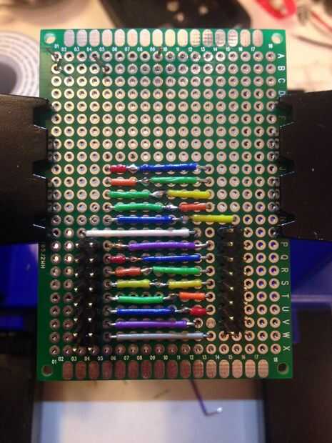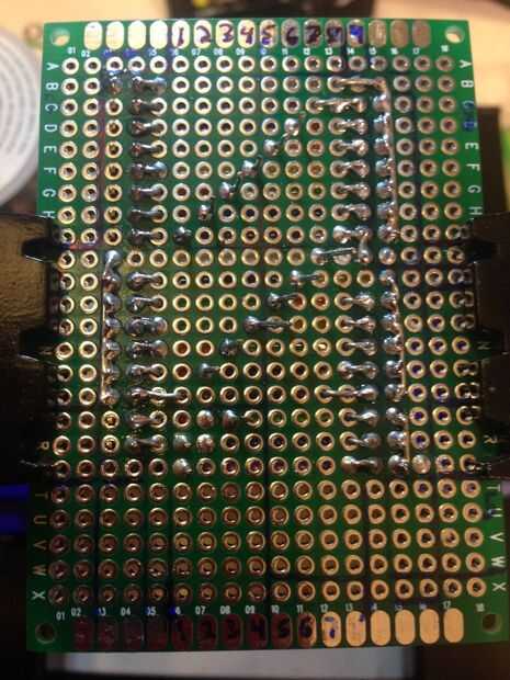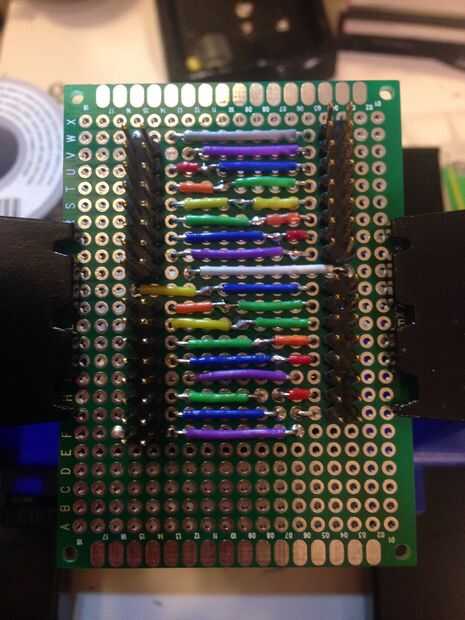 Como terminé cada "Índice" o cables de un bloque de pins, puse los pasadores real y había sostenido cada bloque por soldadura en dos esquinas. Luego recortar los hilos, había doblado hacia abajo y había hecho todas las conexiones.