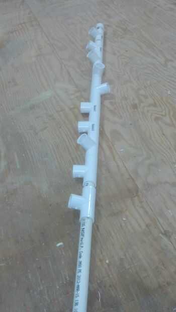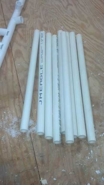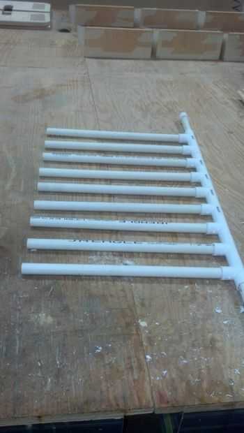 Luego cortar cada peldaño hasta la longitud deseada, hice 16" cada, luego meter em en el Tee.