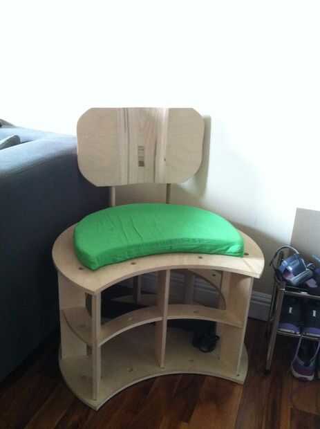 He hecho un conjunto de doce sillas en tres formas diferentes. El interior es abierto con una capacidad de almacenamiento de información simple. Muchas veces guardamos nuestros guantes de béisbol aquí puesto que eran una forma incómoda para muchos otros lugares.