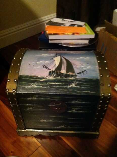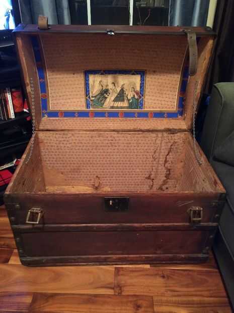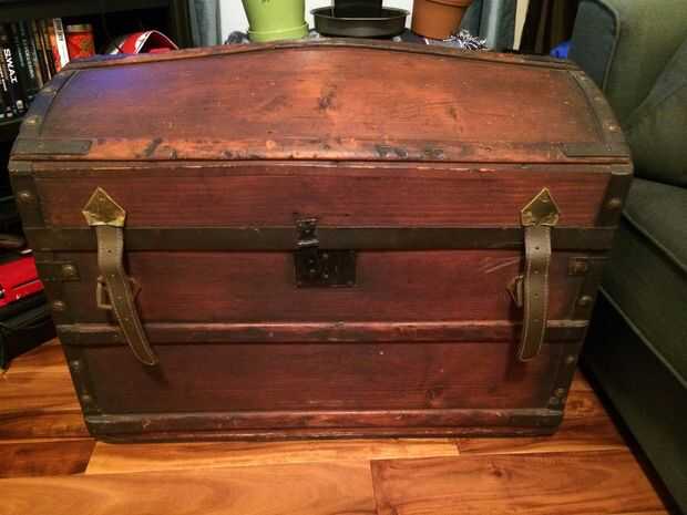 Con frecuencia tenemos invitados alojarte pero vivir en una ciudad hace impracticable una habitación separada. Mi solución fue este tronco agradable, vintage a la habitación a menudo convertimos a nuestra habitación. Contiene todas la almohadas, mantas, sábanas y colchones de aire (tenemos un doble y una reina escondido allí) para 1-3 personas. Si necesitamos guardar estas cosas en otros lugares se toman una buena parte de un armario pero es una pieza bastante atractiva de muebles por cuenta propia y dobles como asiento rápido cuando está cerrada.