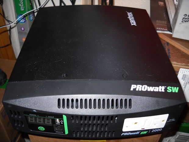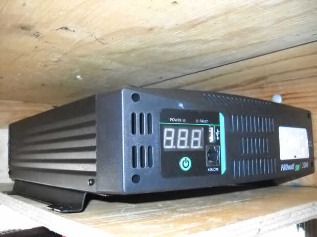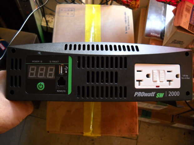Estación de energía solar portable o de emergencia. Estadísticas: 120W (95? max hasta ahora), 12V 80Ah AGM batería solar, MPPT controlador de carga solar, inversor de 400W (utiliza 0.8 A cuando en), 3 ventiladores de refrigeración (en/hacia fuera del