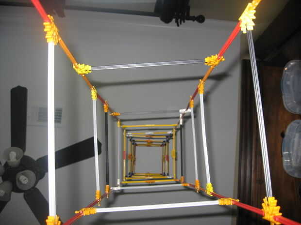 aquí es 56 pies alto Torre de K'nex que hice con tres de mis amigos. Todas las secciones de la torre en casa construí días antes y nos transportó a una granja cercana donde hemos construido al lado de un silo. Primero hicimos una nivel base de made