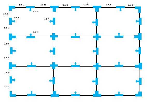 Decidimos por cuadrados de 5 pies 5 pies y que sería 7,5 pies de alto. Estas medidas nos salvó muchos cortes y nos salvó en tubería de PVC desperdiciado, recuerden que somos maestros y estamos en un presupuesto. Cortamos los tubos de 10 pies en trozos de 2,5 y 7,5.