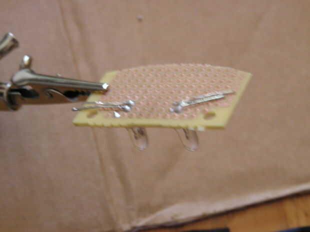 Suelde el Led a la placa de circuito impreso que son equidistantes de los bordes de la Junta. Asegúrese de que tiene los ánodos y cátodos de lo LED del frente a la misma dirección (lados negativos de LED hacia la misma dirección).
