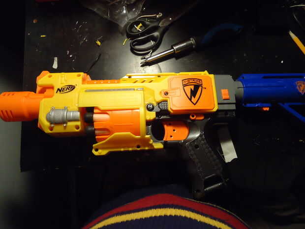 desmontadas mi nerf stampede mientras que en la actualidad en una pintura y construir mod para mi longshot. He aprendido a quitar el restrictor de aire, permitiendo así más energía. Aunque es considerada compleja por ser totalmente automático, el dis