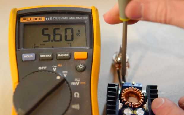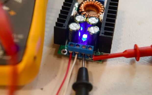 Primero conecte el multímetro a las salidas del regulador de voltaje. Luego conecte el suministro de energía de 19 voltios en la tensión de entrada