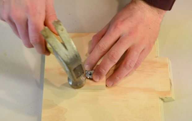 - Martillo el tornillo en el agujero en el tablero 2" desde el lado del taladrado