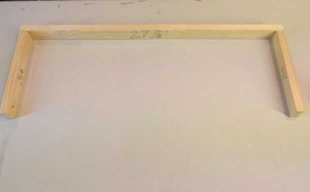 - Usando pegamento, una abrazadera de la esquina y las uñas, arreglar las 9,25" juntas a la Junta de 27,875" como se muestra arriba