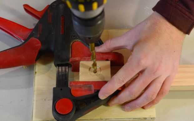 - Utilizar un 15/32" broca para perforar ambas tarjetas directamente a través del orificio pretaladrado