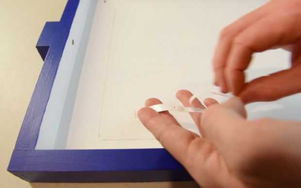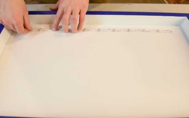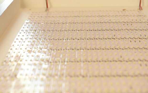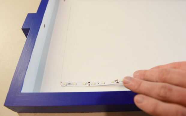 Marca dos líneas del fondo y del lado que tu LED está centrado y recto. A continuación, iniciar poniendo su LED tiras hacia abajo. No importa la orientación que pone. Si usted realmente quiere coherencia, tener todos los cables positivos de cada hilo en la parte superior del lado derecho del panel, pero esto no es tan importante.
