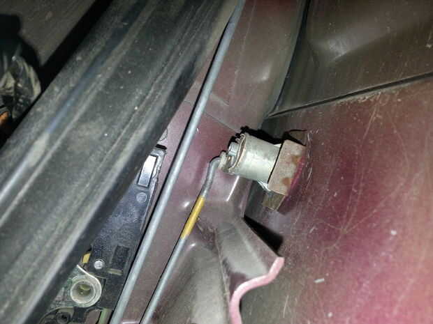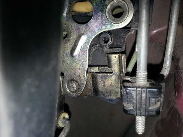 Una vez que la cerradura un poco afuera que puede maniobrar la sección superior de que la barra de control de la cerradura, dejándolo conectado a continuación. Y ahora el pequeño mal de bloqueo en la barra de control siguiente. Previamente he le lo puedo describir cómo para el extremo roscado de bloqueo. Su dolor el culo. Si usted puede conseguir los ojos en él, mira que la orientación de la presilla de plástico negro. Pueden hacer girar, por lo que no sabe qué orientación tendrá para usted. Si usted puede conseguir un cierre para arriba de la cerradura hará su vida más fácil.