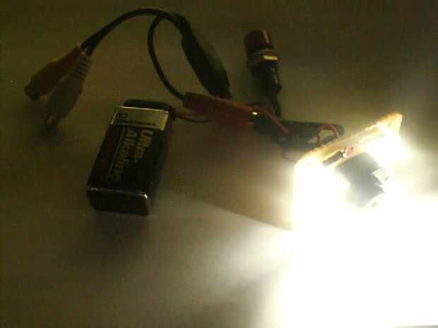ahí estaba, con una batería de 3 voltios cámara en una mano y un LED blanco en el otro. Era bastante obvio lo que planeé hacer. Se reunieron algunos materiales adicionales y me fui a trabajar. Dentro de un par de minutos, tuve una linterna y en algun