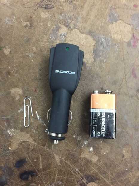 lo que se necesita para este proyecto es un coche de carga puerto, una batería de 9 voltios y un clip.