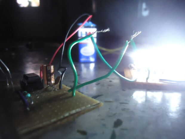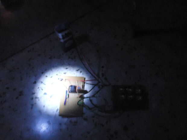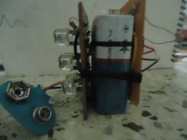 Conecte el clip de la batería a la batería y apagar las luces de la sala; la luz debe brillar. Si de alguna manera no, compruebe el cableado correctamente y también Compruebe si la batería está agotada. Ahora el punto una antorcha encendida a la ldr, la luz se apaga otra vez. Después de la prueba, coloque las dos placas de lado a lado en las dos caras de la batería y poner una goma alrededor para mantenerlos en su lugar.