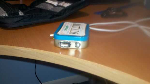 este es un hub usb de 3 puertos con un puerto macho flexible lleva a cabo. La cosa entera es muy sencilla de construir y es un divertido hack hardware. El centro está construido también en una lata altoids, ahora obtendrá algunas divertidas miradas d
