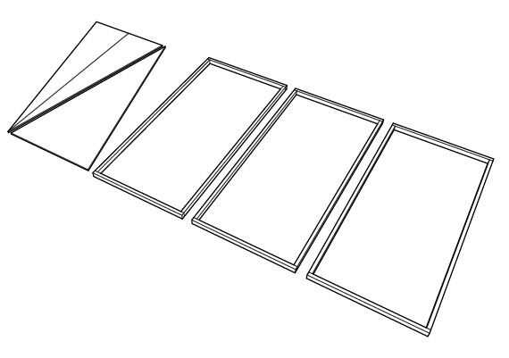 Unir las 2 piezas del triángulo rectángulo lo tienes 2 triángulos con dimensiones congruente. Combinar la madera dimensional en 3 frames con conectores 'sandwich rígido-ángulo'.
