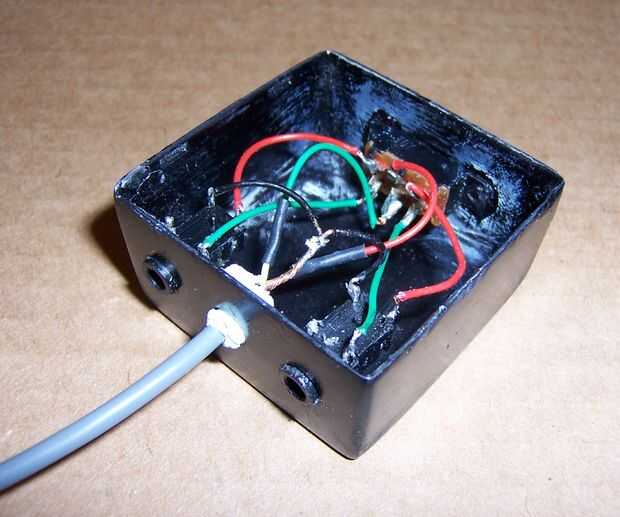 En este punto usted querrá pegar en el interruptor y tomas y ejecute el cable de audio en orificios le han hecho. Por lo tanto debe tener 4 de ellos (uno debe ser cuadrado para el interruptor). Una vez que has pegado en adelante y soldar todos detrás juntos.