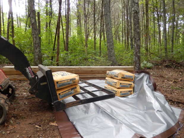 Esta parte del proceso fue un poco tediosa. El terreno tiene 2 capas. Unos 6" de la capa superior del suelo y el resto es arcilla hardpan Virgen... arcilla hardpan realmente seco, duro,. Mi taladro está montado sobre una planta de energía hidráulica sobre orugas de goma. La unidad pesa alrededor de 2700 libras. Tomó la parte mejor de un día para 6 agujeros perforados hasta 36" en profundidad. Tenías las raíces de los árboles para ir a través y el barro fue muy apretado y seco. Así que, básicamente, estaban afeitando la arcilla más de la perforación. Finalmente consiguió todos los agujeros perforados y consiguió el 6 x 6 tratados postes en el suelo. Y, que como tengo para 2 semanas. Llovió y llovió, llenando todos mis 36" los agujeros con agua. El barro hizo un muy buen trabajo de sostener el agua, también.
