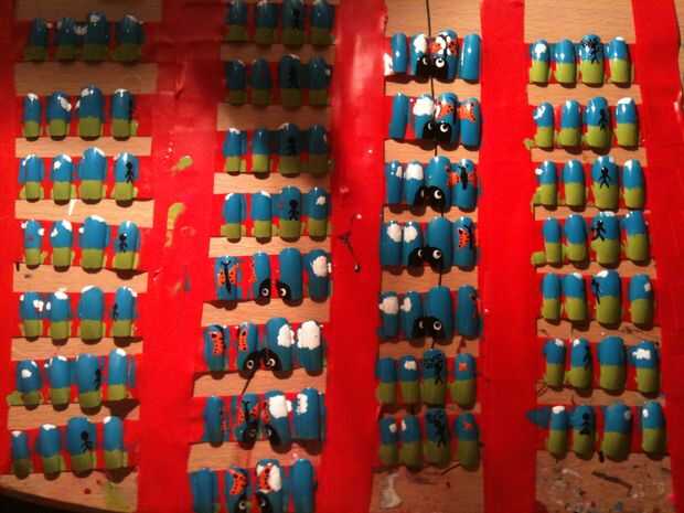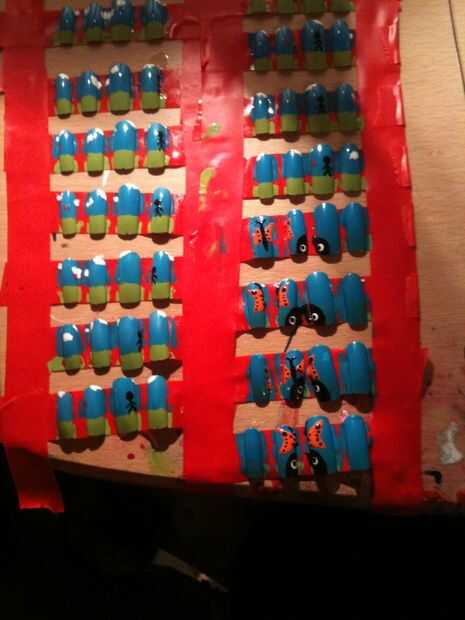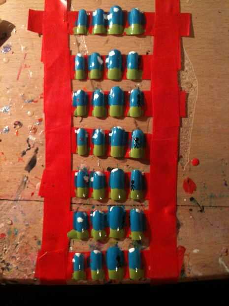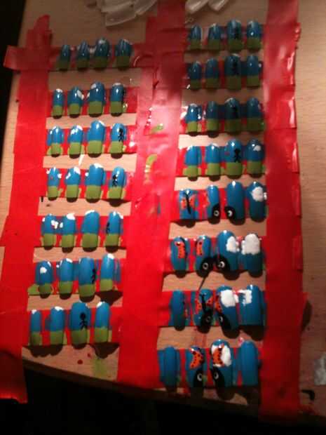 ok para empezar with4 clavo andpaint una escena. se puede hacer cualquier cosa que desee a continuación empezar a pintar uñas más e ir desde allí.