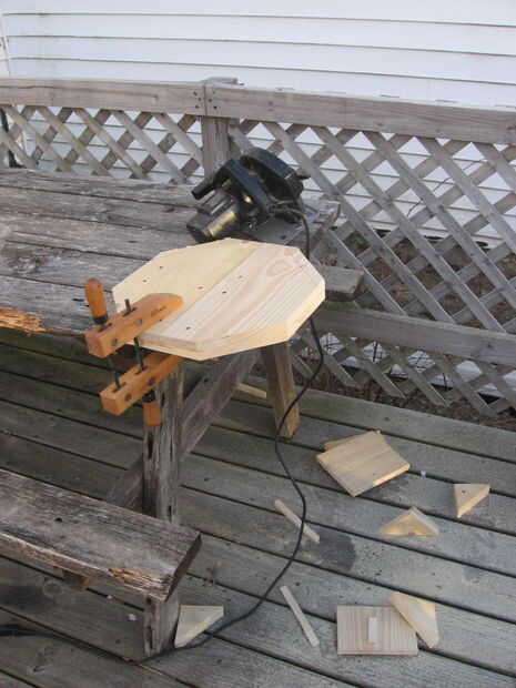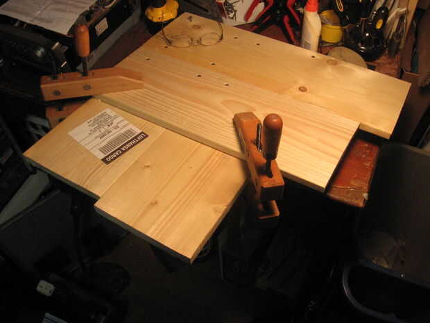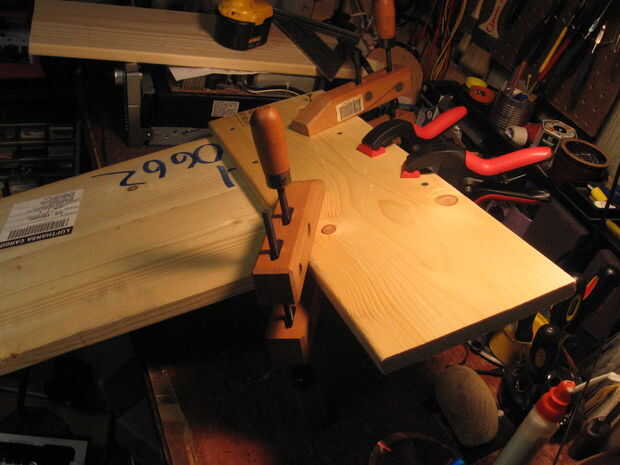 5. abrazadera. Usé un surtido de abrazaderas (sorpresa) y un montón de 11/4" placa de yeso tornillos. Si usted es inteligente, habrá planeado para que este lado a la parte inferior cuando termines.