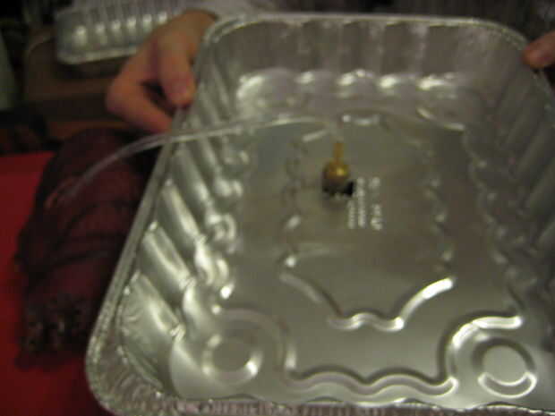 Después de que el tubo está conectado la la sartén está en su lugar, pegar el tubo de exceso en el corazón y colocar el corazón muy bien encima de sus agujeros que por lo que parece estar en una bandeja sólida.