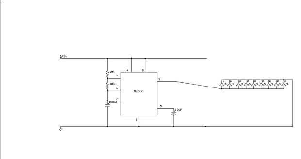 NE555 es el más genérico de todos los temporizadores. Su gama de la fuente es de 5V a 15V (que son cómodos con 9V..). Su corriente de salida de hoja de datos trata de 200mA que es suficiente para conducir los 20 LED de mina...