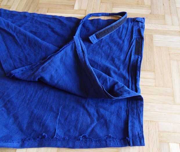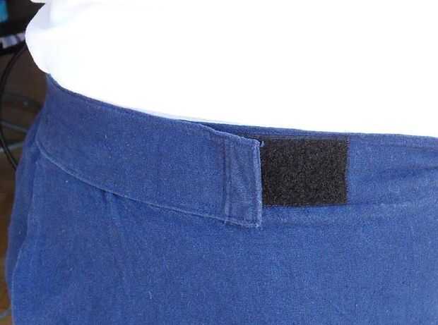 Para la tela más pesada como lino, utilicé una pieza de cierre velcro. Añadir la parte áspera a los pantalones y la suavidad a la cinta. En mi caso, he añadido un lazo adicional en el borde de la tela para actuar como soporte de la cinta.