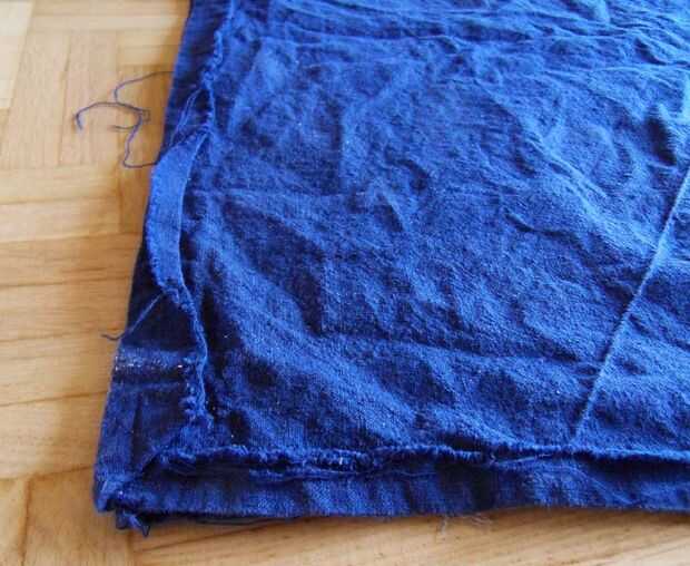 Hizo bastante fácil apenas aleteando el borde largo y cose por el borde. De esta manera el borde libre de la tela sigue siendo visible, pero es mucho menos trabajo que un dobladillo más complejo.