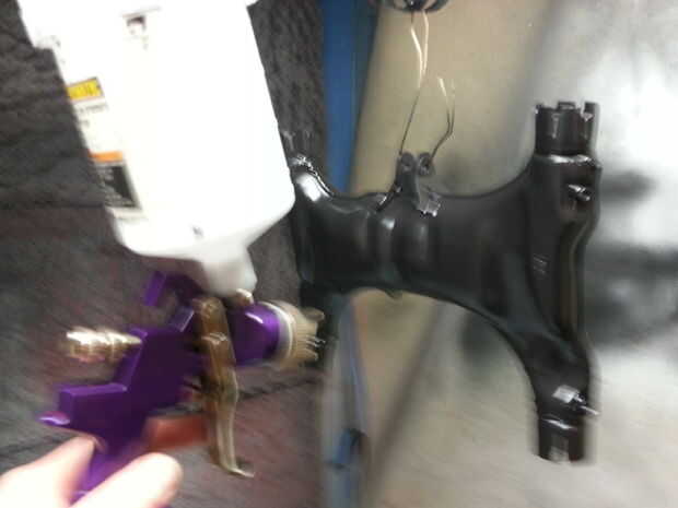 Usé un barato o puerto carga pistola rociadora (gasp!) y negro pintura satén encabezado de cerámica que compré de polvo comprar la libra. Capa de pintura o polvo normal no son clasificados para este uso. La cerámica es buena hasta para 2000 F.