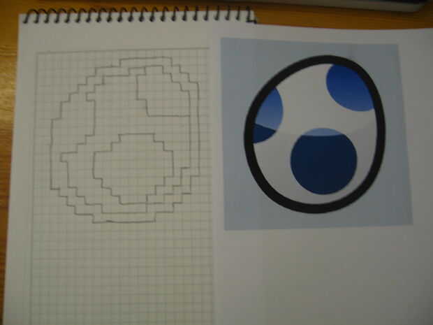 En primer lugar, encontrar una imagen adecuada del carácter video del juego, que sea alguien de Mario, elegí el huevo de Yoshi, asegúrese de que la imagen que encontrará es grande (suficiente resolución para poder imprimirlo más pequeño o más grande. conseguirlo impreso, preferiblemente en color, pero no hacer mi error y utilizando un programa o MS Word, espejo de la imagen, esto es por lo que funciona de la manera que explico más adelante. El espejado ayudarán ya que una vez que se dibuja en el papel, el papel es volcó y luego coloreado.