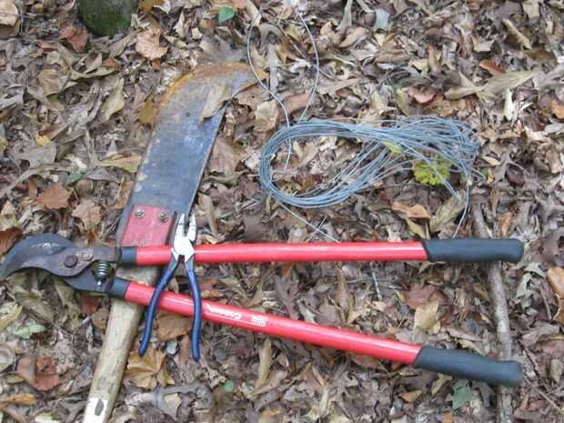 También se pueden utilizar un machete, un hacha y unas tijeras pequeñas. En lugar del cable, también puede utilizar alambre enfardar, cordeles de yute, cuerda del algodón o cualquier cosa que se ajusta a la ley. Asegúrese de es fuerte y puede cortar fácilmente con tus alicates.