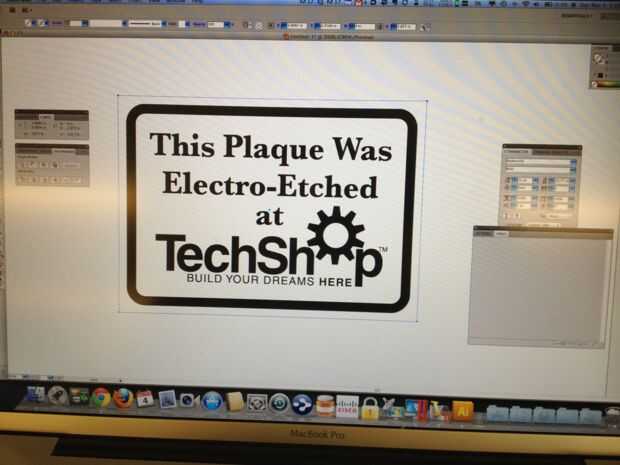 La obra de arte que se muestra es de mi primer paso a través de este proyecto. Porque el tipo muy pequeño de la coletilla en el loco de TechShop ("construir su sueños aquí") y el "TM" con la letra "p" en el loco de TechShop estaban despegando solos, llevó a aquellos fuera de la obra de arte.