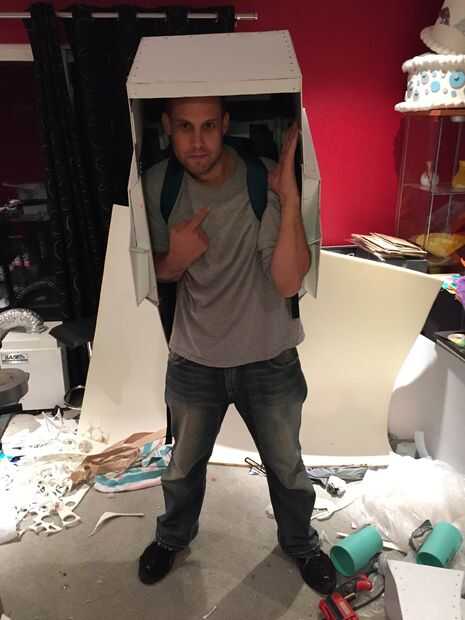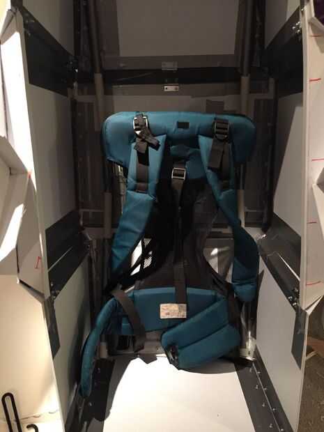 Extienda para asegurarse de que su cabeza y cuerpo caben dentro. Tienes que tener un montón de espacio para la cabeza moverse dentro hace que el torso más largos que el tronco cerca de 8 pulgadas cuando se siente en la parte superior de su cabeza. y suficientemente ancha como para adaptarse a tus hombros y las caderas en la parte posterior. Así como el portador de bebé arnés / mochila enmarcada metal.