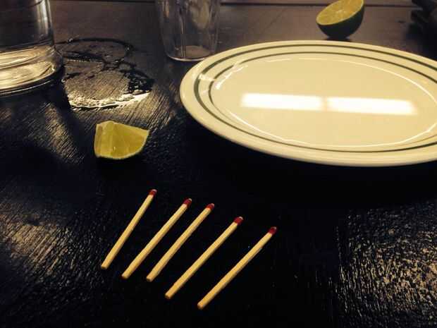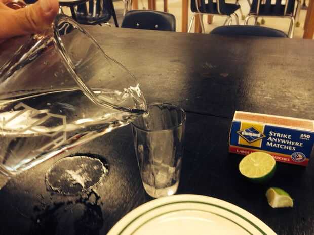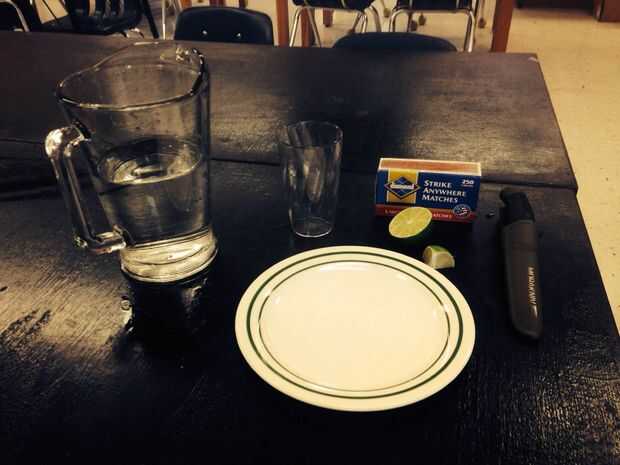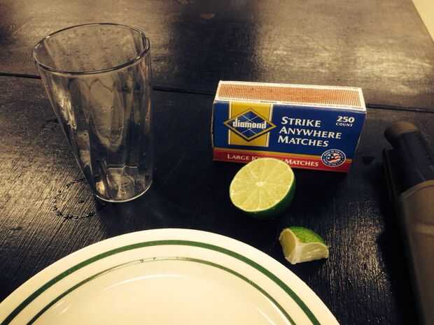 Un plato, un vaso de agua, agua, una cuña de la cal y 5 partidos