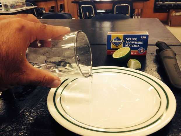 Vierta el agua del vaso sobre la placa (tenga cuidado de no derramar el agua sobre la mesa). Ahora... Recuperar el agua en el vaso sin levantar la placa!