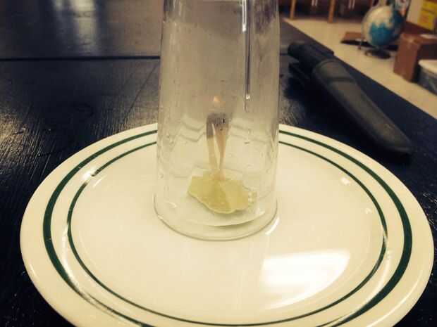 Aquí le damos una mejor explicación por escrito de por qué el agua entra en el vidrio. Aire tiene peso. A nivel del mar, el aire pone alrededor de 15 libras de presión sobre cada pulgada cuadrada (PSI) de la superficie. Aire se compone de varios gases, incluyendo oxígeno, que el fuego necesita para arder. Usted puede demostrar esto encendiendo una vela pequeña y luego colocando un vaso de agua sobre él; la vela se quema el oxígeno atrapado en el cristal, y luego la llama se apagará, ya que oxígeno fresco de afuera del vidrio es capaz de reemplazarlo.