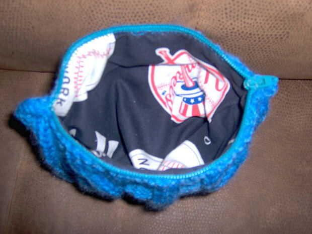 Here is a simple purse to make. Este bolso está hecho de un tarro plástico de almendra. Su sede por la parte superior le permite ver el contenido fácilmente y rápidamente. Tiene una lengüeta de Velcro para sujetar convenientemente un espejo compacto.