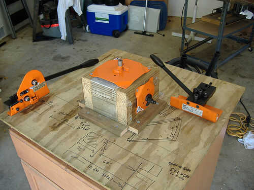 Es una configuración simple con las palancas. Un anillo de metal debe ser creado para unir las dos palancas en la posición 'abajo'. Usé algunos mierda hermosa 1/8 barra plana con una simple soldadura. No tiene que ser y no debe ser apretado. Darse cierta holgura en los lados para que sea fácil de deslizarse sobre.