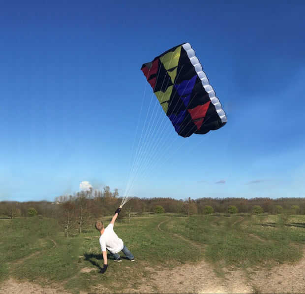 Las cometas son divertidas, así que ¿por qué no construir una enorme? Éste es 4, 5 x 3 x 0, 5 metros, para un área total de casi 14 metros cuadrados. Está diseñado por mí, que se hace para tener tanto tirón como sea posible y puedo decir que esto es una bestia. Sólo leve viento no puedo mantener yo y necesita anclar a un coche o similar. Es muy divertido.