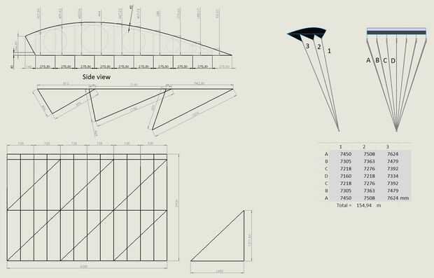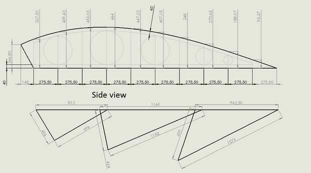 El borde superior curvo es probablemente la dimensión sólo incluso, es un piso de 3000mm. Esto es relevante conocer, para cuando haga los paneles superiores.