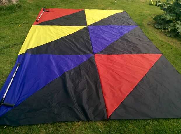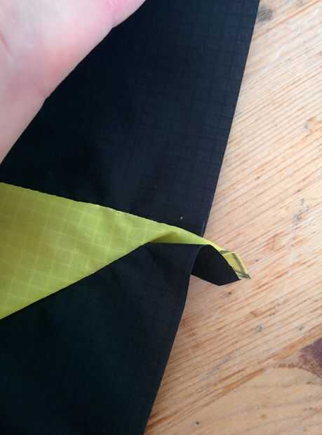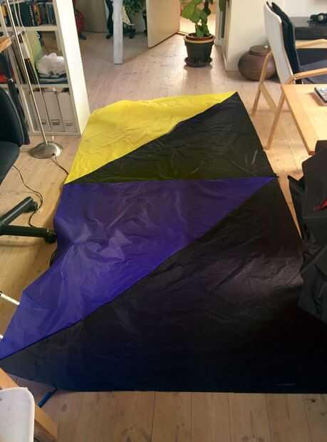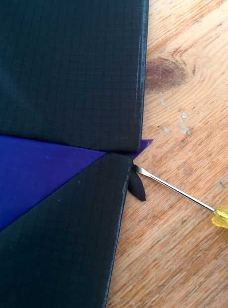 En el borde posterior de la hoja inferior (el que está en la parte inferior de la cometa) y en el que se arrastra y borde de la lámina superior, reforzó el borde con dacron. Esto es para evitar que la presión de aire rasga para arriba la costura de esta zona de muy alta tensión.